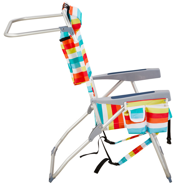 Get comfortable with this Folding beach Chair. It is an ideal solution for sitting and relaxing in comfort during outdoor activities. It is also a must-have for a sporting event, a picnic, a camping trip or even just to the backyard. The aluminum frame is not only light-weight, but also offers even greater sturdiness and stability to make it stand up to various conditions. In addition, the adjustable back with 5 positions to create better sitting feeling, and the extra storage space such as pouches on the back and side cup holder allow you to keeps the necessities right by your side. The beach chair is light-weight and easy to move so that it fits easily inside most vehicles for fast transport wherever you need.