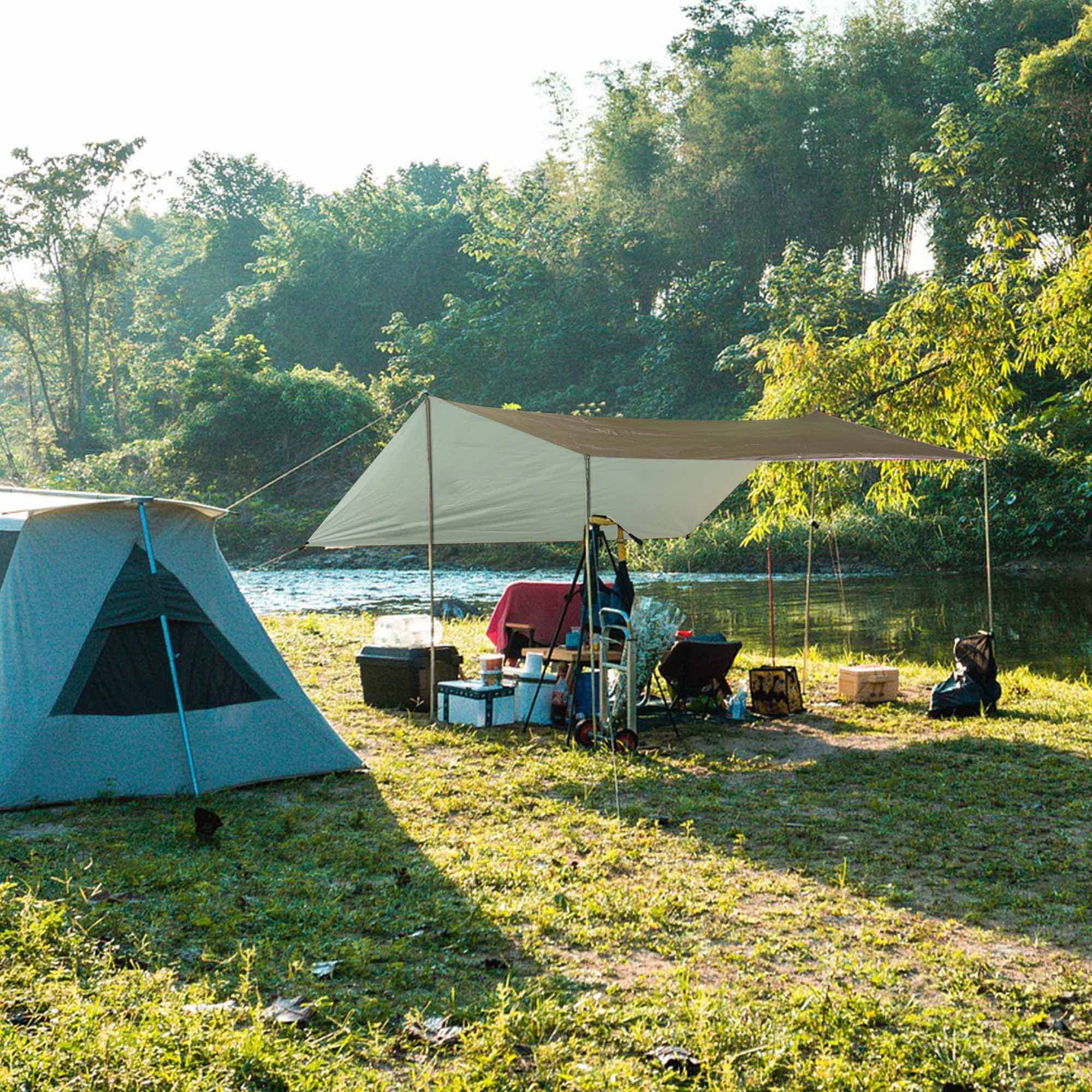- UV Protection & Water Resistance - Made of 210D oxford fabric with silver PA coating, the tarp offers UV50+ protection for protecting you from sunlight, avoiding sunburn and reducing temperature in hot summer; shelter with PU3000mm water resistance is suitable for using on drizzling days; durable material ensures wear resistance and tear resistance for frequent use