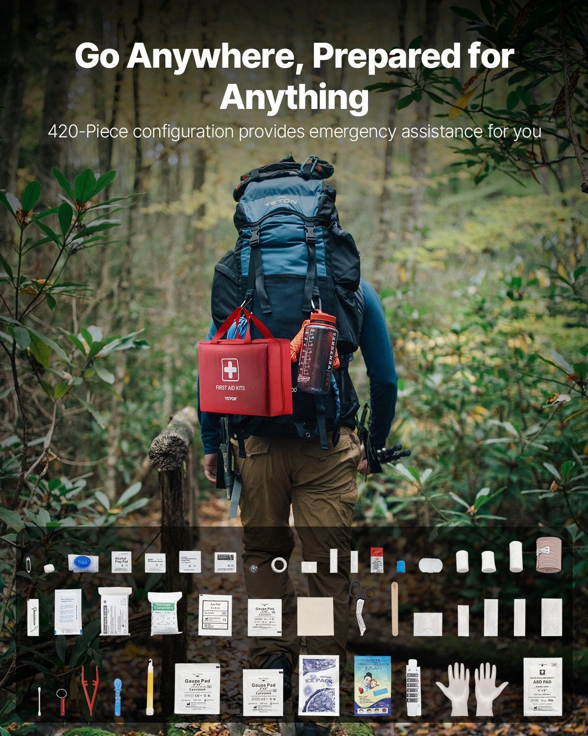 VEVOR First Aid Kit, 420 Pieces, 600D Nylon Large Survival First Aid Bag, Emergency Medical Supplies, for Home, Car, Office, Travel, Camping, Truck VEVOR First Aid Kit, 420 Pieces, 600D Nylon Large Survival First Aid Bag, Emergency Medical Supplies, for Home, Car, Office, Travel, Camping, Truck VEVOR First Aid Kit, 420 Pieces, 600D Nylon Large Survival First Aid Bag, Emergency Medical Supplies, for Home, Car, Office, Travel, Camping, Truck
