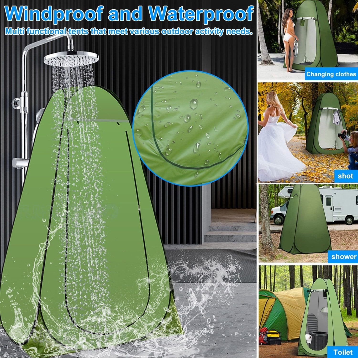 Comfortable Design: The foldable portable toilet features an elongated-shaped 12-inch bucket seat, providing a wider and more relaxed experience similar to a home toilet.Robust Durability: Constructed from premium ABS plastic, this 4.8-pound portable camping toilet can support up to 450-500 lbs, ensuring stability for both adults and children.Protective Tent: The pop-up tent, made of 170T silver-coated polyester, offers UPF 50+ sun protection, reflecting sunlight and reducing UV rays by 70%.Spacious Enclosure: Measuring 47.2(L) x 47.2(W) x 74.8(H) inches, the tent provides ample space for adults, with a large zippered top opening and side window for ventilation.Compact Portability: This all-in-one kit includes an ergonomic folding toilet and privacy tent, collapsing into a compact 22-inch storage bag for easy transport and minimal storage space.Versatile Utility: Beyond a camping toilet, it functions as a trash can, stool, or vomiting bucket, suitable for various outdoor activities and emergencies.
