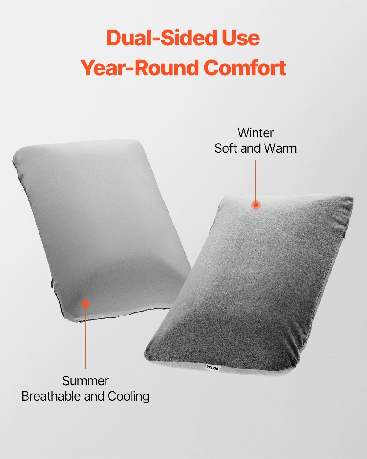 1.Dual-Sided Cover: Enjoy year-round comfort with this all-season camping pillow! The breathable, cooling side keeps you fresh during hot summer nights, while the soft, cozy side provides warmth and comfort in winter. Designed to adapt to all seasons, this travel pillow ensures a restful and refreshing sleep.