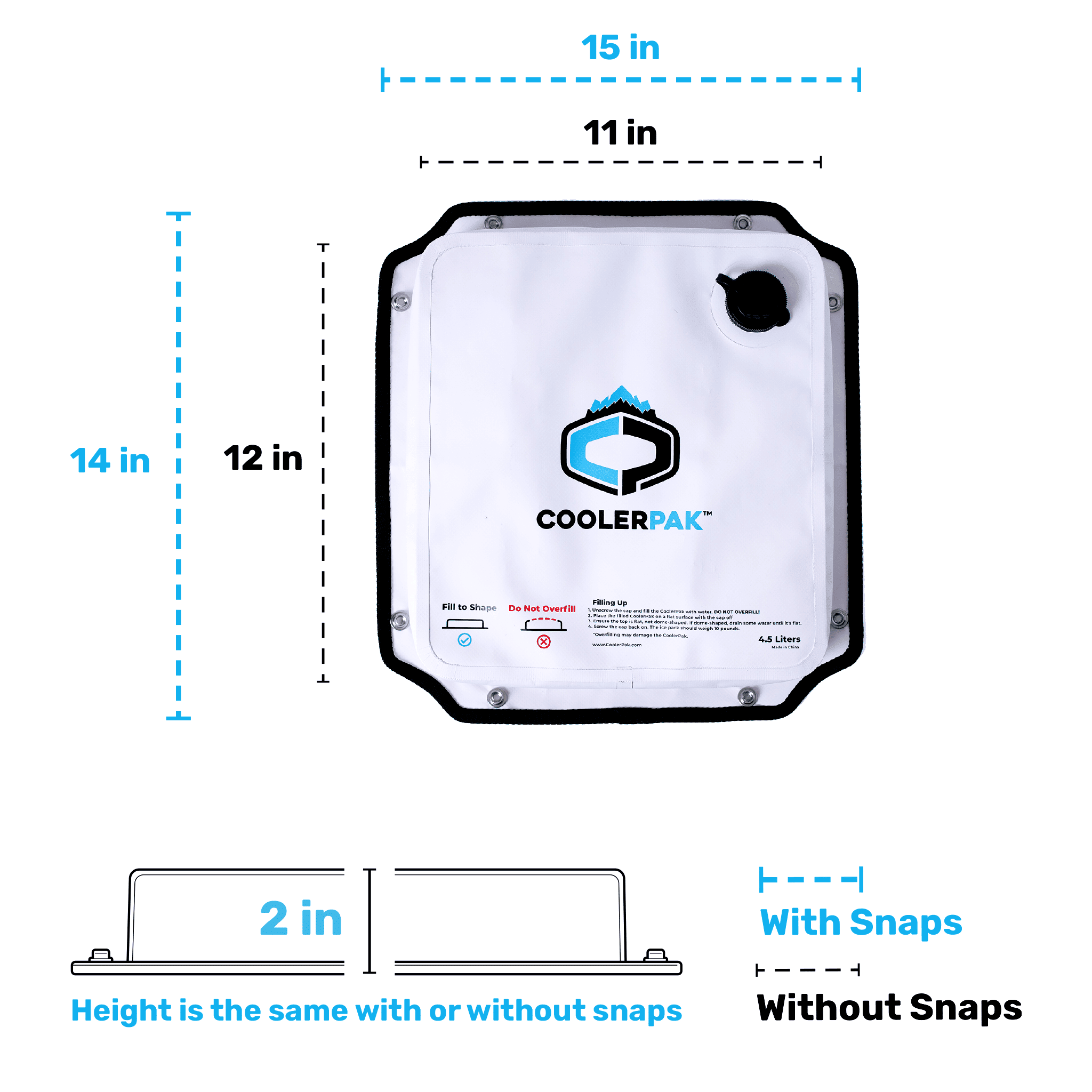 | Dimensions With Snaps | 14" L x 15" W x 1.75" H |