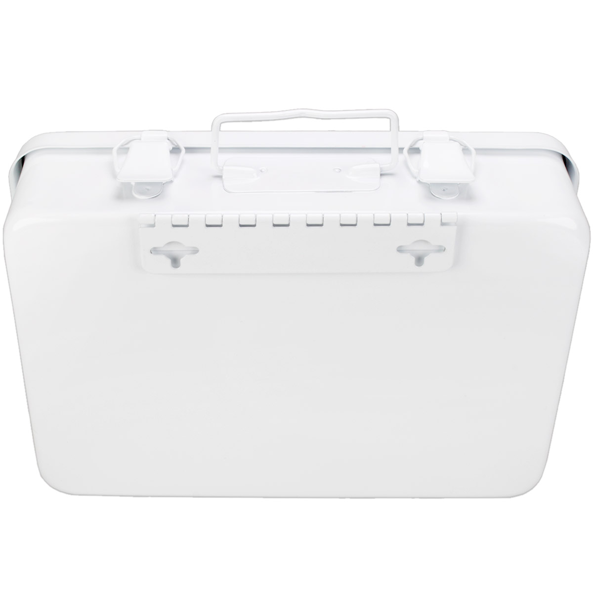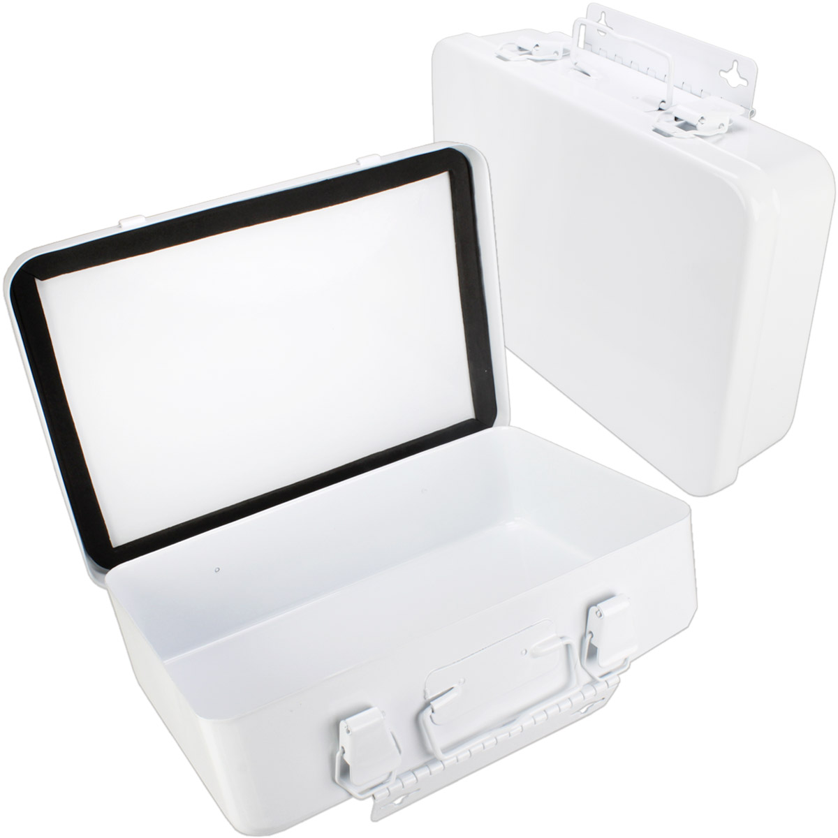 10 Unit, Empty Metal Case w/ Hanger & Gasket, 7-1/2"x4-1/2"x2-3/8", Horizontal - 1 Each This horizontally configured empty metal first aid case holds up to 10-units of product and features a hanger and gasket. Kit Dimensions: 7-1/2"x4-1/2"x2-3/8"