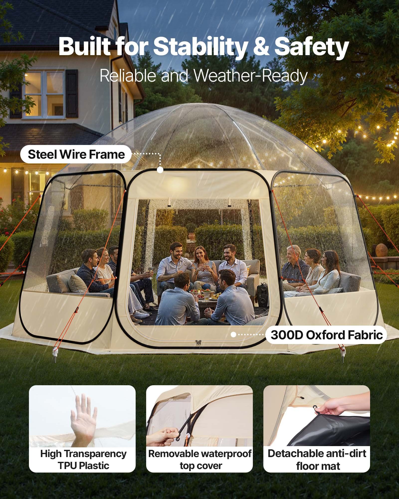 VEVOR Pop up Bubble Tent, 15 x 13.8 ft Waterproof & UV-Resistant, Clear Camping Tent Shelter, Outdoor Garden Dome Igloo Tents with Windows VEVOR Pop up Bubble Tent, 15 x 13.8 ft Waterproof & UV-Resistant, Clear Camping Tent Shelter, Outdoor Garden Dome Igloo Tents with Windows VEVOR Pop up Bubble Tent, 15 x 13.8 ft Waterproof & UV-Resistant, Clear Camping Tent Shelter, Outdoor Garden Dome Igloo Tents with Windows