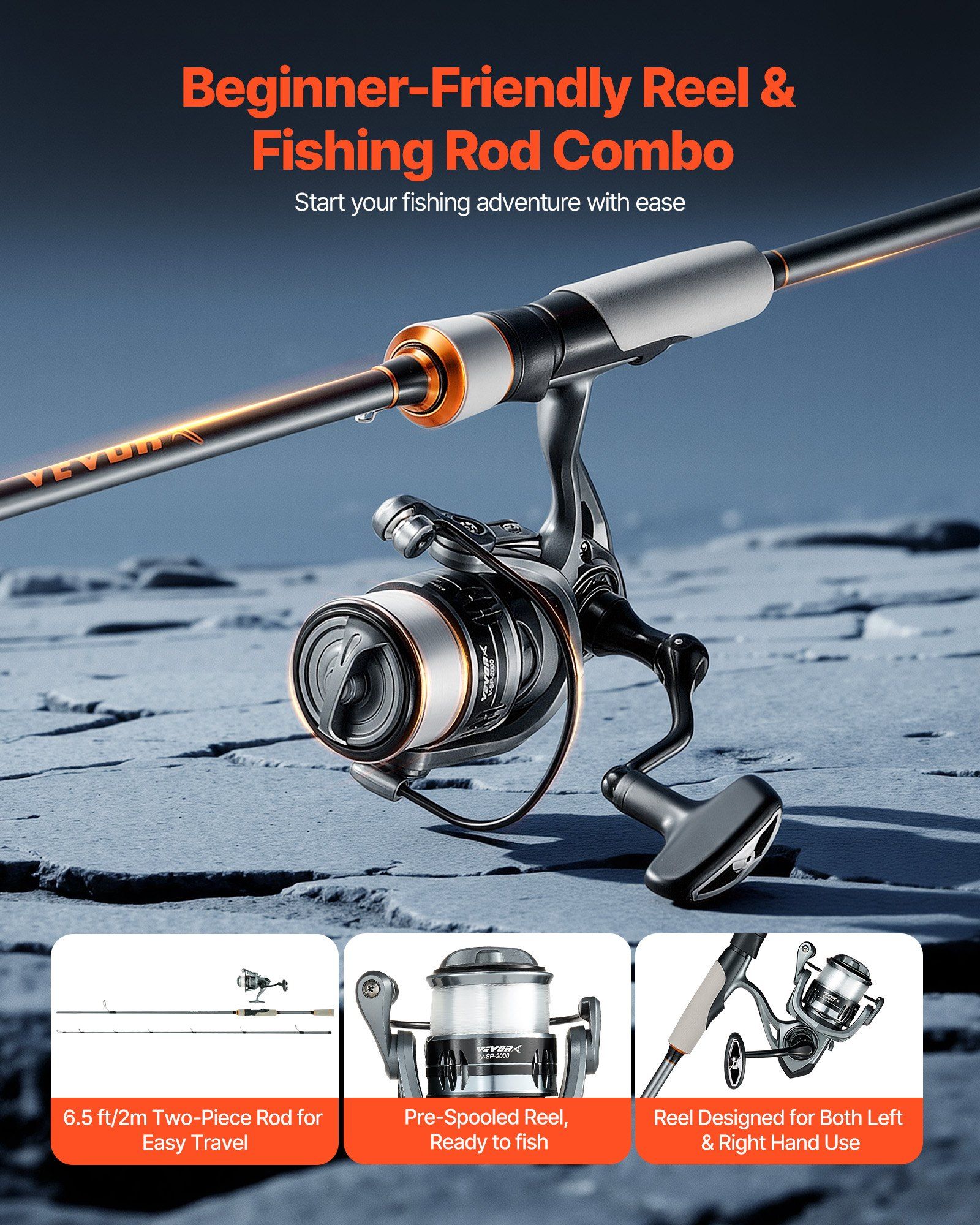 1.Beginner-Friendly Combo: Designed for beginners, this 6.5ft/2m, 2-piece fishing combo is easy to carry and ready to use with pre-spooled line. The reel supports both left- and right-handed anglers, making it a versatile choice for both freshwater and saltwater fishing adventures